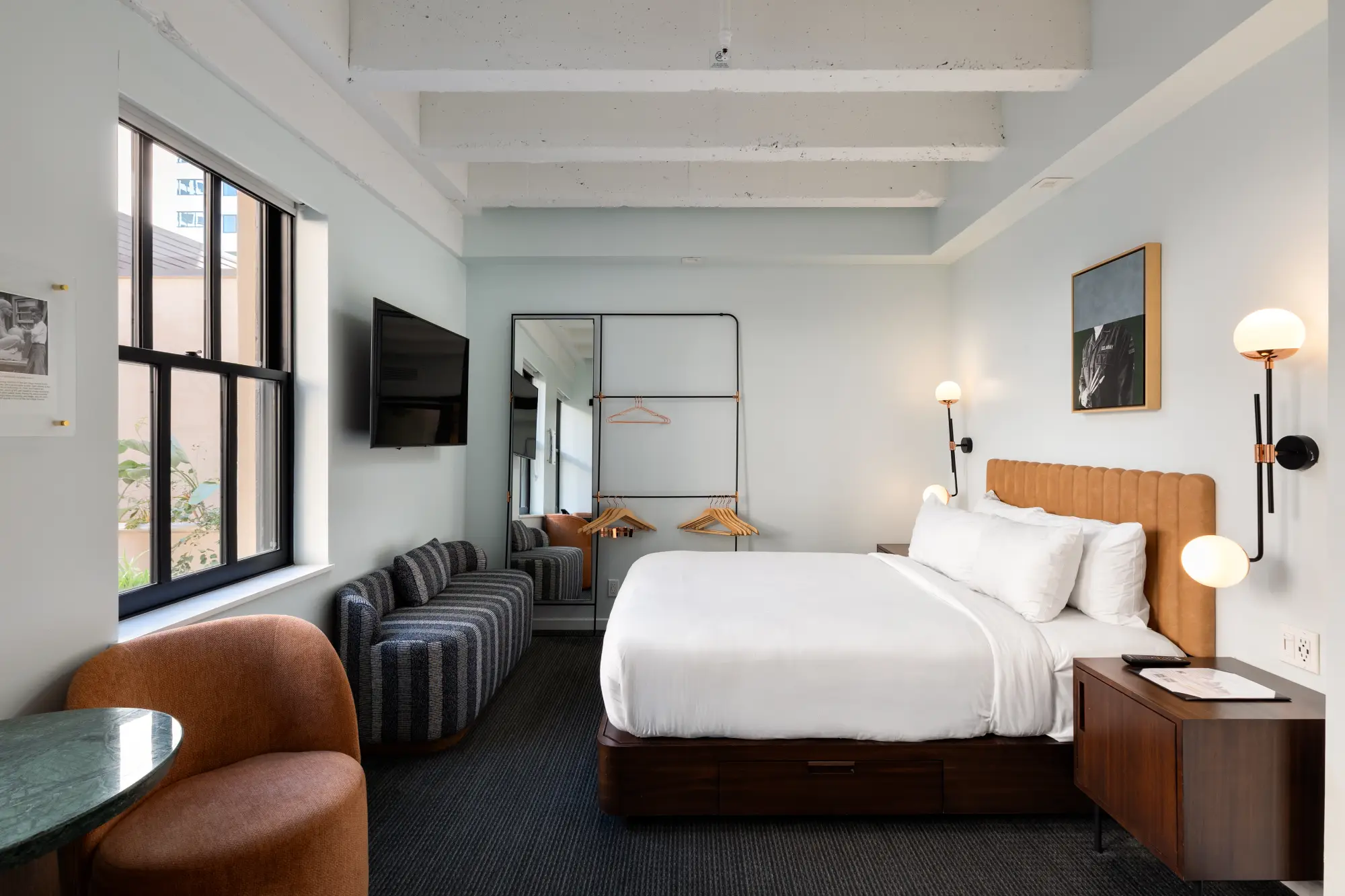 The Guild Hotel is a reimagination of the iconic, historic Armed Services Building with a rich YMCA history in the heart of downtown San Diego. A Marriott San Diego Tribute Portfolio Hotel, The Guild seamlessly blends historic charm and modern amenities, offering elegant hotel suites in San Diego that create an inspiring stay in America’s Finest City.